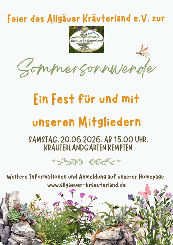 Der Allgäuer Kräuterland e.V. lädt alle Mitgliedern ein um gemeinsam die Sommersonnwende zu feiern.